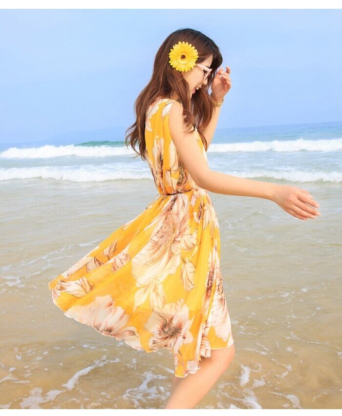 ワンピース 花柄 ゆったり リボン付き レディース チュニック ひざ丈 ノースリーブ 3853