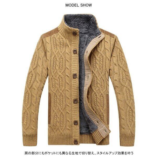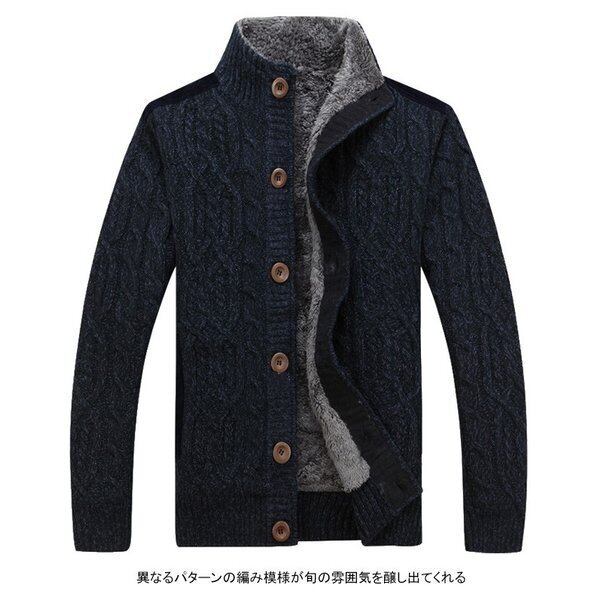 ★商品名:ニットジャケット 裏起毛 メンズ ニット ジャケット スタンドネック 長袖 ケーブル編み