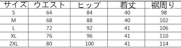 2XL:ウエスト80 ヒップ100 着丈41 裾周り114