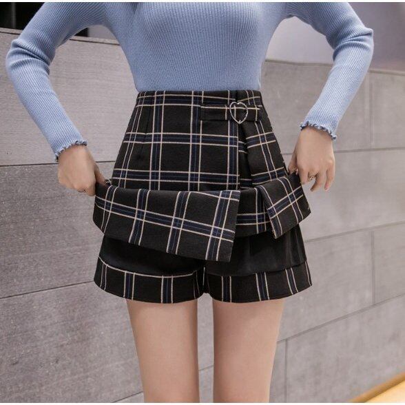★特徴:インナーつきのミニスカート。ハイウエストのチェック柄で秋冬にぴったり。