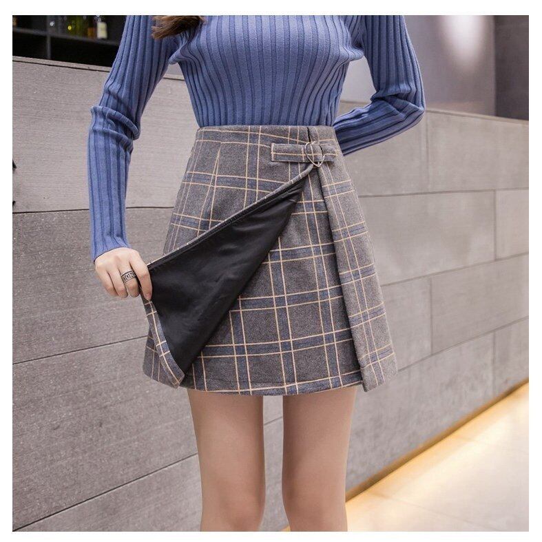★商品名:スカート レディース ミニスカート ハイウエスト Aライン タイトスカート 台形 チェック柄 大きいサイズ 秋冬