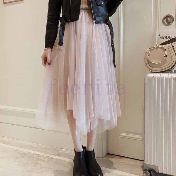 ★特徴:カジュアルなファッションにぴったりのチュールスカート。不左右非対称なデザインがおしゃれ。秋、冬におすすめ。