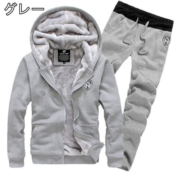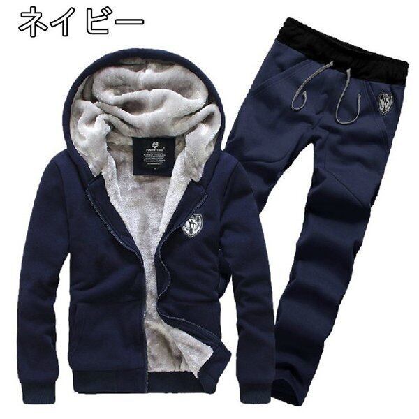★商品名:セットアップ メンズ 長袖 スウェット パーカー フード付き 裏起毛 裏ボア 上下セット