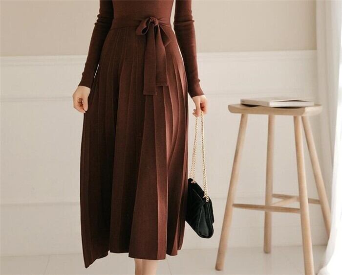 ニットワンピース ロング レディース 冬 ニット ハイネック ベルト付き 3988