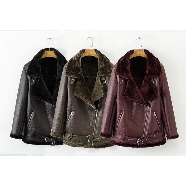 ★特徴:たっぷりファーの付いたレザーのライダースジャケット。厚みがあって防寒性に優れております。