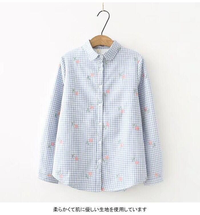 ★商品名:チャックシャツ ブラウス レディース 裏起毛 シャツ チェック柄 長袖 花刺繍 厚手