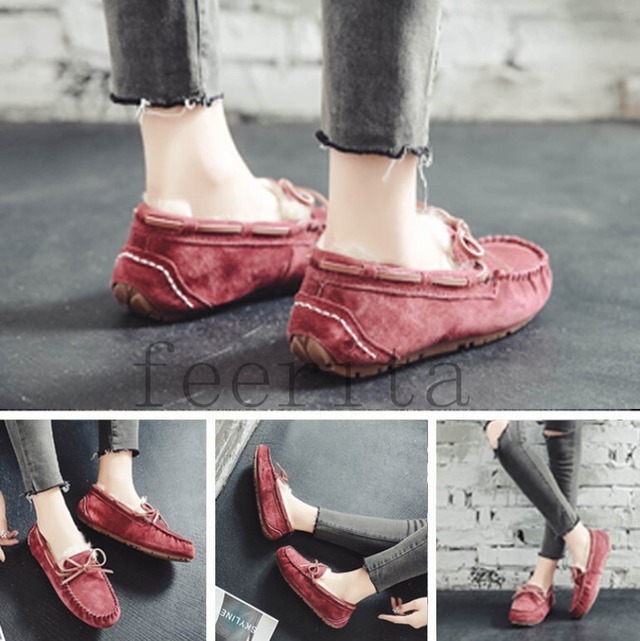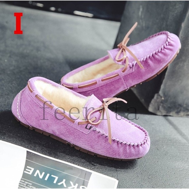 モカシン ムートンローファー レディース 11color もこもこ 裏起毛 パンプス 4080
