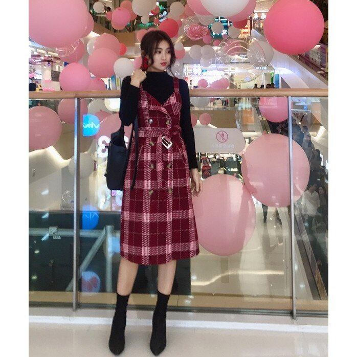 ★特徴:ワンピースとトップスのセットアップ。可愛らしい赤のチェック柄で秋冬にぴったり。楽チンコーデ。
