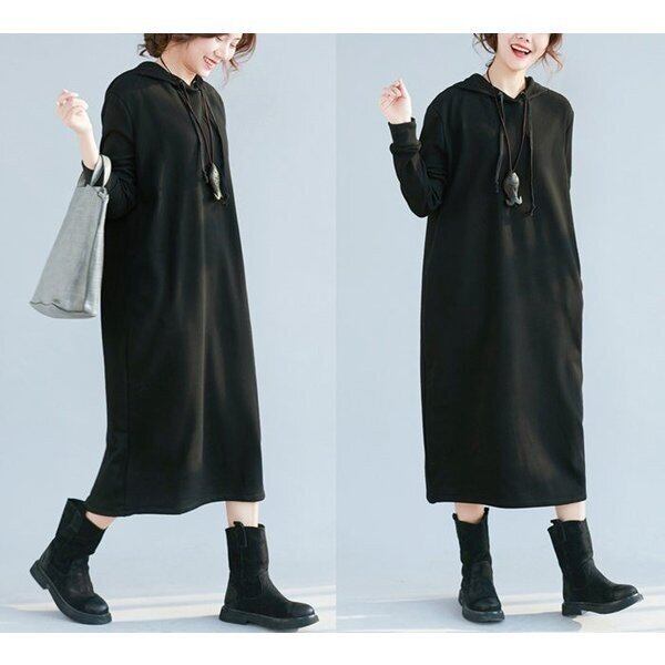 ★特徴:ゆったり大き目のロングワンピース。フード付きでかわいい。楽チンコーデ。