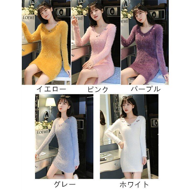 ニットワンピース ニットワンピース 膝丈 タイト レディース ふわふわ 4169