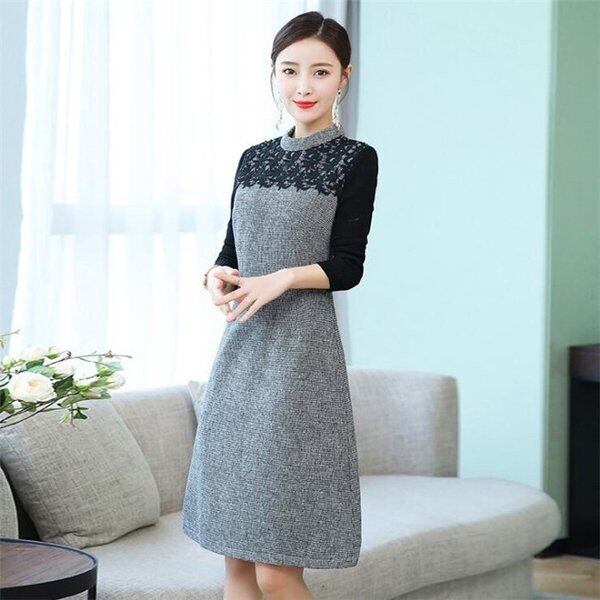 ★商品名:ワンピース レディース 膝丈ワンピース 秋冬 きれいめ aライン 冬 長袖 韓国 韓国ファッション コーデ おすすめ カジュアル きれいめ 大きいサイズ ゆったり 20代 30代 40代 50代