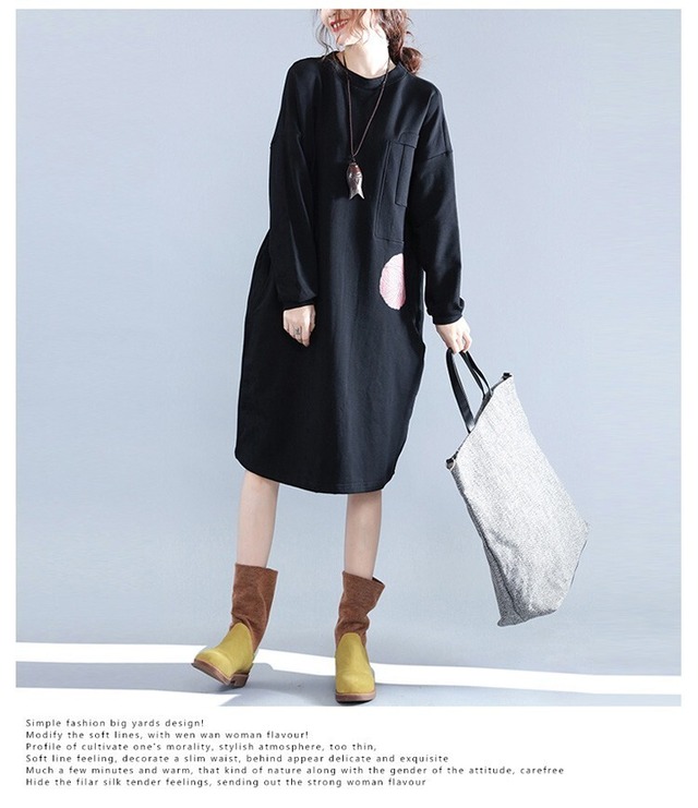 ★商品名:ワンピース プルオーバー 裏フリース 膝丈 体型カバー ゆったり 韓国 韓国ファッション コーデ おすすめ カジュアル きれいめ 大きいサイズ ゆったり 20代 30代 40代 50代