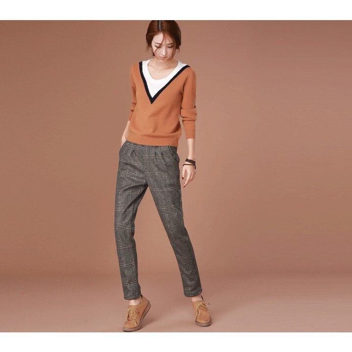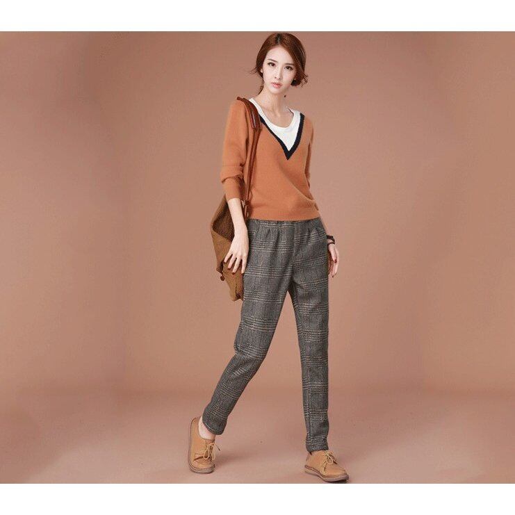 ★商品名:チェック柄パンツ ズボン 厚手 ロングパンツ ウエストゴム レディース 冬 韓国 韓国ファッション コーデ おすすめ カジュアル きれいめ 大きいサイズ ゆったり 20代 30代 40代 50代
