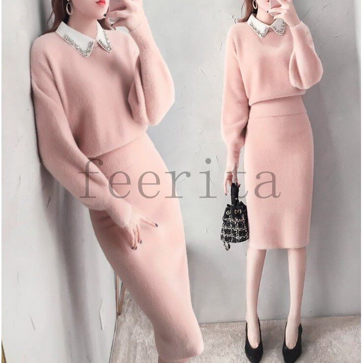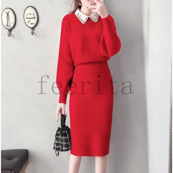 セットアップ ニット レディース 4color スカート 2点セット タイト 4245