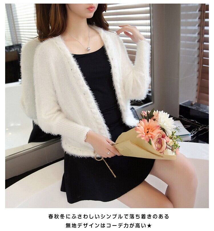 ニットカーディガン ショート丈 レディース モヘアニット 4267