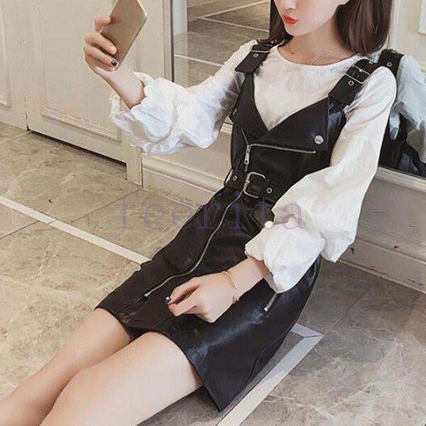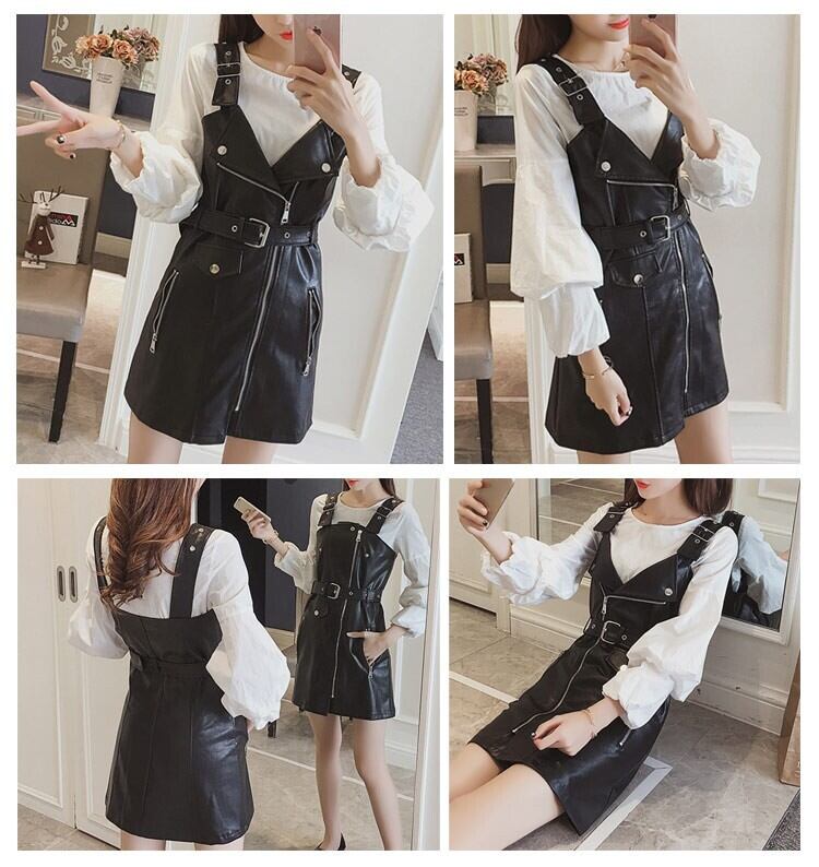 ★商品名:ワンピース サロペットスカート ライダース風 レディース レザー調 ジャンパースカート 韓国 韓国ファッション コーデ おすすめ カジュアル きれいめ 大きいサイズ ゆったり 20代 30代 40代 50代