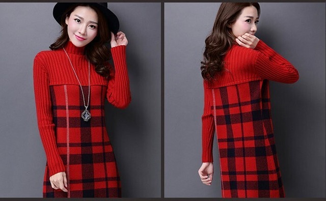 ワンピース チェック柄 ハイネック ニットワンピース レディース 2617