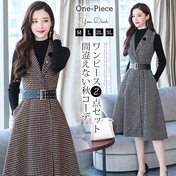 ★商品名:ワンピース レディース 秋冬 セットアップ ひざ丈ワンピース ニットソー 長袖 韓国 韓国ファッション コーデ おすすめ カジュアル きれいめ 大きいサイズ ゆったり 20代 30代 40代 50代