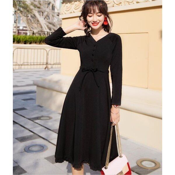 ★商品名:ワンピース レディース 膝丈 長袖 Aライン きれいめ 韓国 韓国ファッション コーデ おすすめ カジュアル きれいめ 大きいサイズ ゆったり 20代 30代 40代 50代