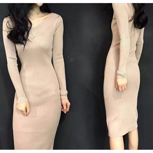 ニットワンピース ワンピース タイト レディース 膝丈 長袖 2451