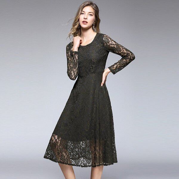 ワンピース レディース 秋 きれいめ ロングワンピース 長袖 総レース 2463