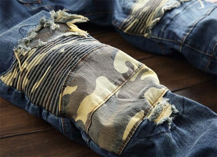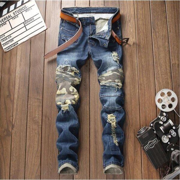 ★特徴:ダメージ加工+迷彩柄のデニムパンツ。細身でかっこいいですよ。写真のベルトは付属しません。