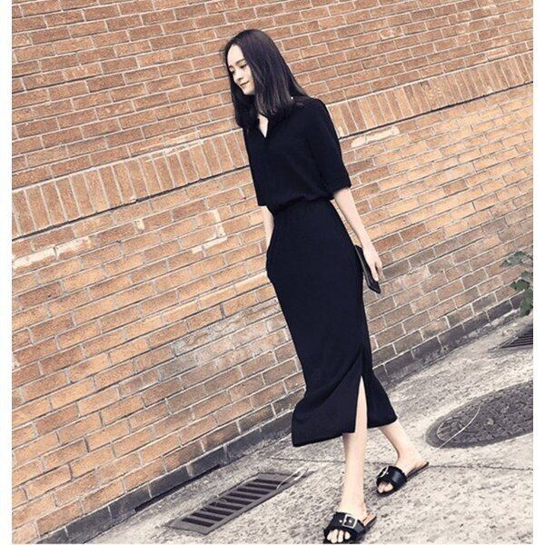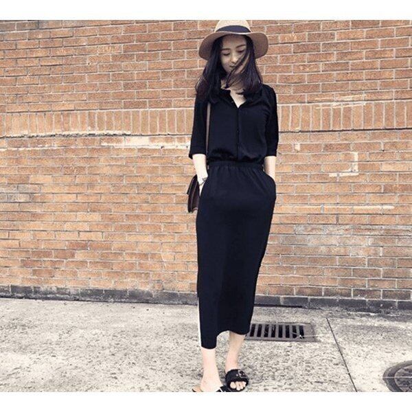 ★商品名:ワンピース ロング シャツワンピース レディース 五分袖 スリット入 韓国 韓国ファッション コーデ おすすめ カジュアル きれいめ 大きいサイズ ゆったり 20代 30代 40代 50代