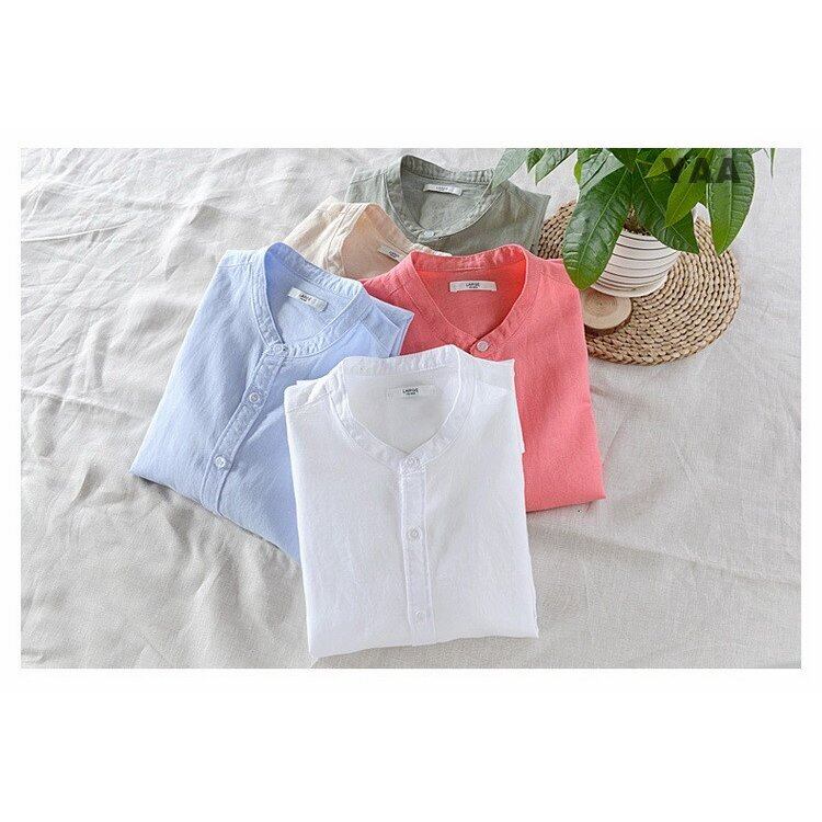 シャツ メンズ 長袖 ノーカラー リネンコットン 綿麻 カジュアルシャツ 4413