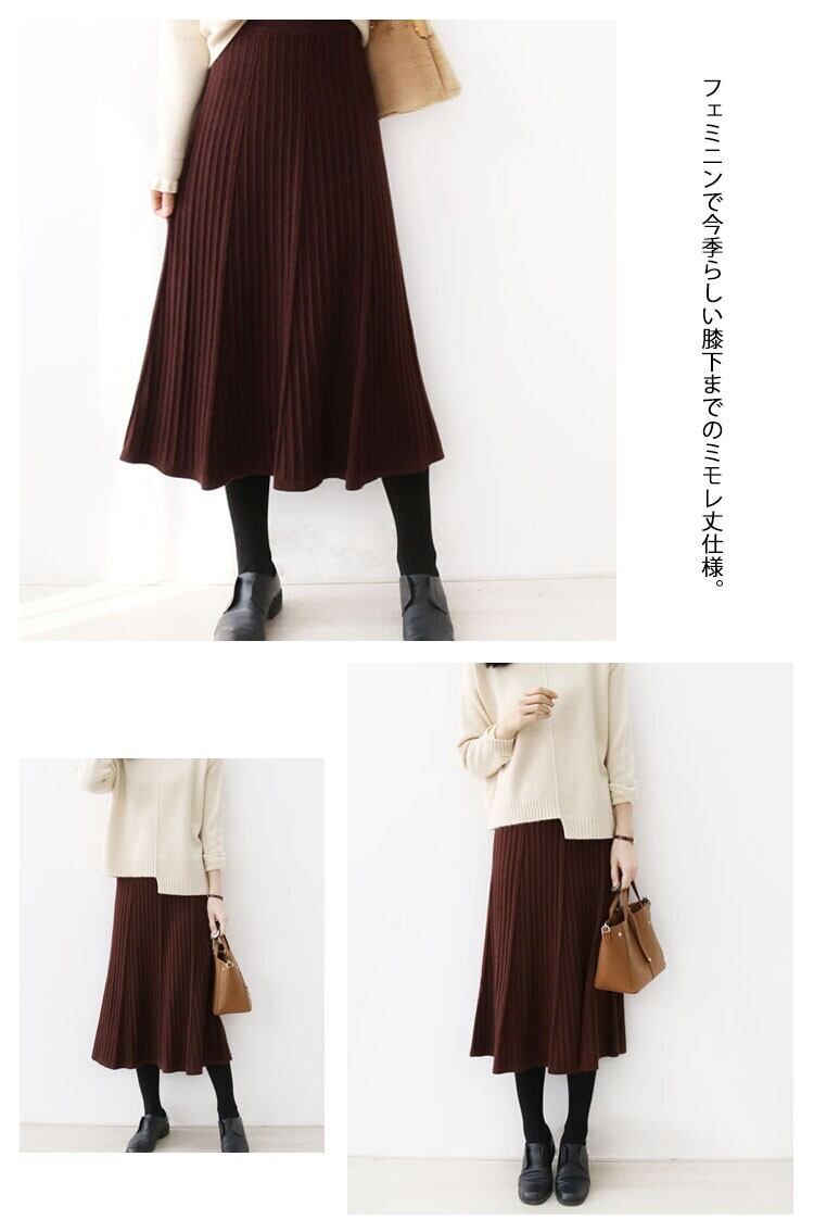 ★特徴:ニット素材のプリーツスカート。 フェミニンで今季らしい膝下までのミモレ丈仕様。