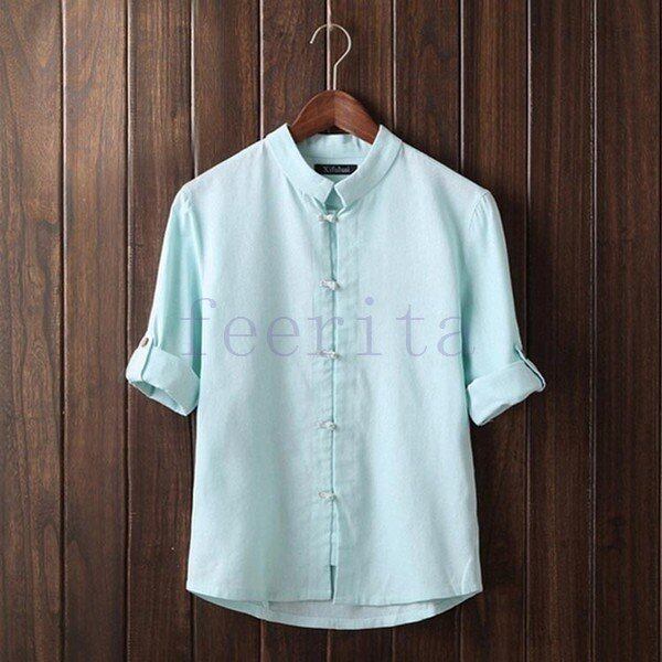 ★特徴:春、秋におすすめのカジュアルシャツ。スタンドネックで中国風のシャツです。大きいサイズまで対応。