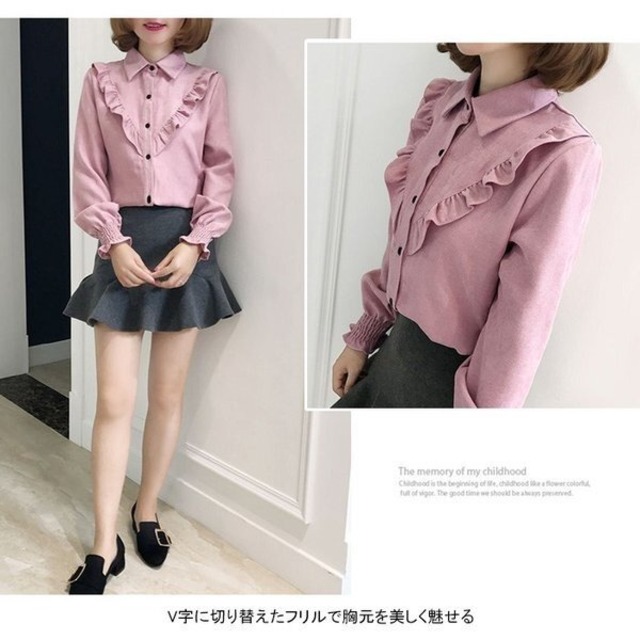 ★特徴:フリル切り替えのかわいいブラウス。裏起毛タイプとノーマルタイプの2種類あります。