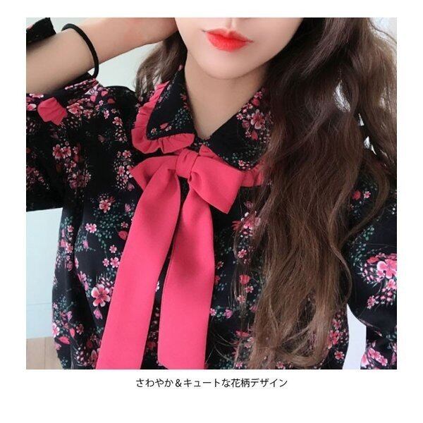 ★商品名:ブラウス シャツ 花柄 レディース リボン付き フリル付き 韓国 韓国ファッション コーデ おすすめ カジュアル きれいめ 大きいサイズ ゆったり 20代 30代 40代 50代