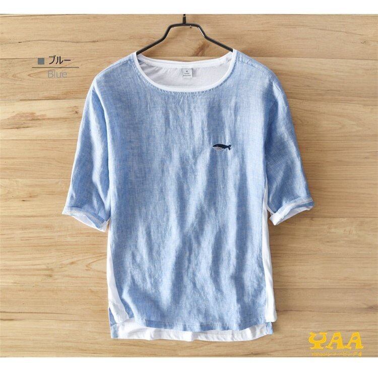 tシャツ メンズ 半袖 カジュアルシャツ リネンシャツ 大きいサイズ 4433