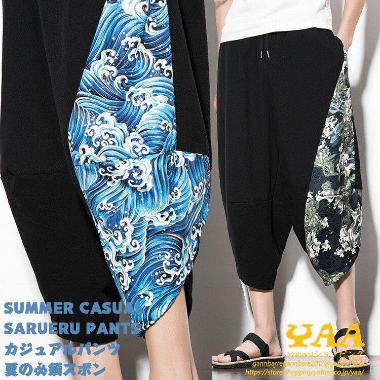 サルエルパンツ パンツ メンズ 和風柄 8分丈 春夏 大きいサイズ 4486