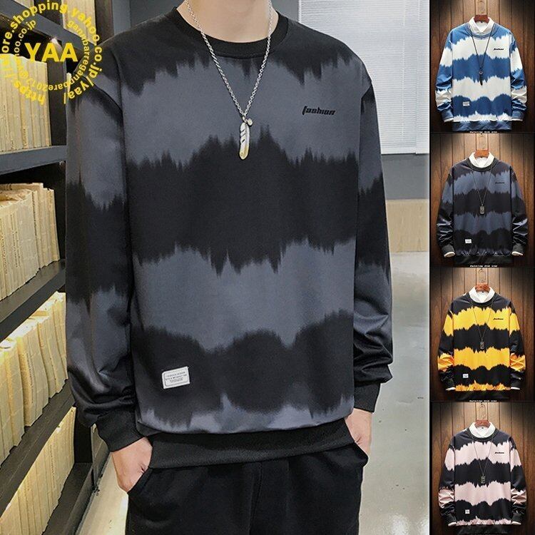 ★商品名:トレーナー スウェット クルーネック ボーダー 長袖 メンズ 大きいサイズ 韓国 韓国ファッション