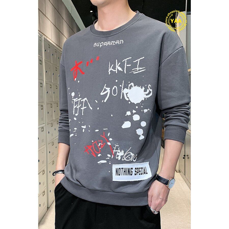 ★商品名:トレーナー スウェット プルオーバー クルーネック プリント 長袖 メンズ 大きいサイズ 韓国 韓国ファッション