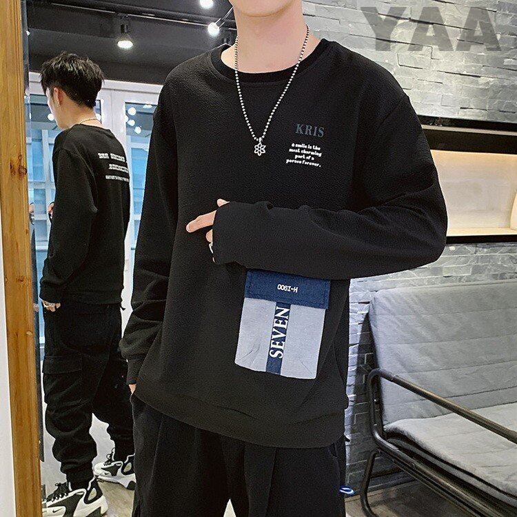 ★商品名:トレーナー スウェット プルオーバー クルーネック 切り返し 長袖 メンズ 大きいサイズ 韓国 韓国ファッション