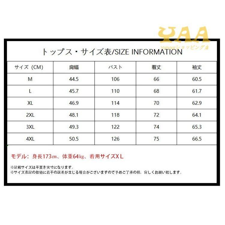 4XL: 肩幅50.5 バスト126 着丈75 袖丈66.5