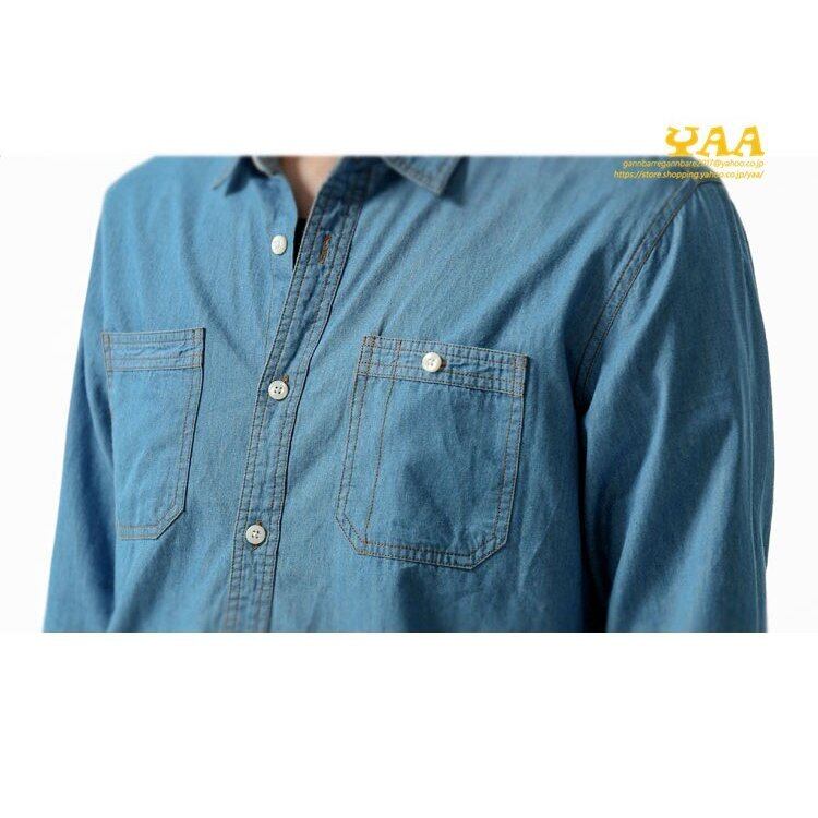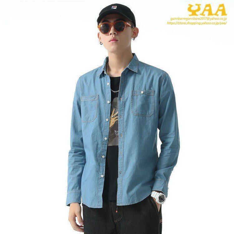 デニムシャツ メンズ 長袖シャツ ウォッシュ加工 カジュアルシャツ 大きいサイズ 4742