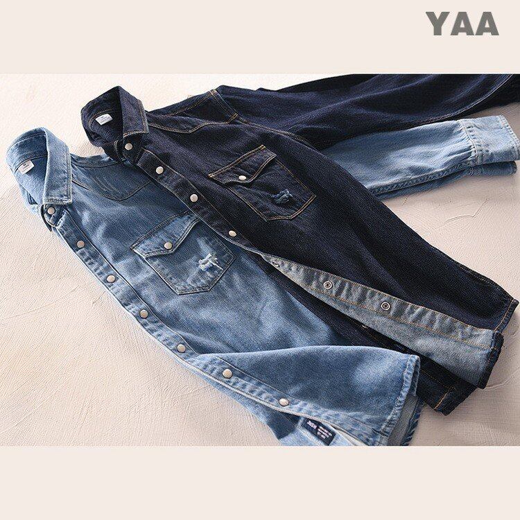 デニムシャツ メンズ 長袖シャツ ダメージ カジュアルシャツ 大きいサイズ 4747
