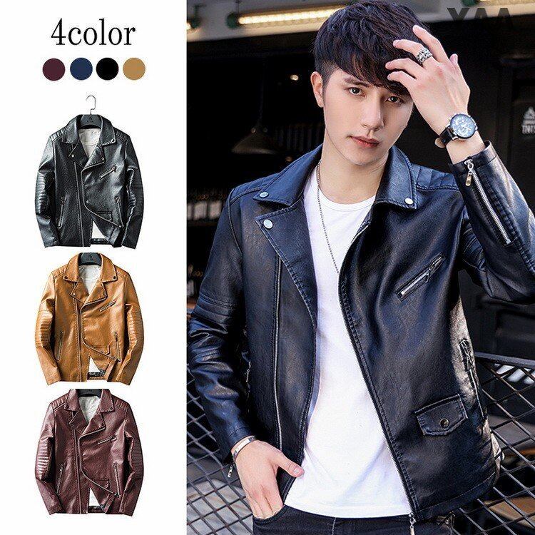 レザージャケット ライダースジャケット メンズ PUレザー ブルゾン ジャケット 春秋 4831