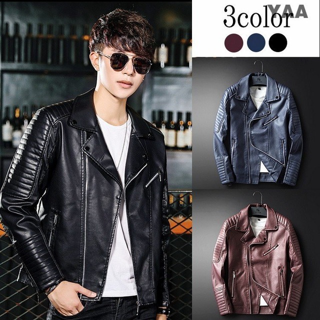 レザージャケット ライダースジャケット メンズ PUレザー ブルゾン ジャケット 春秋 4832