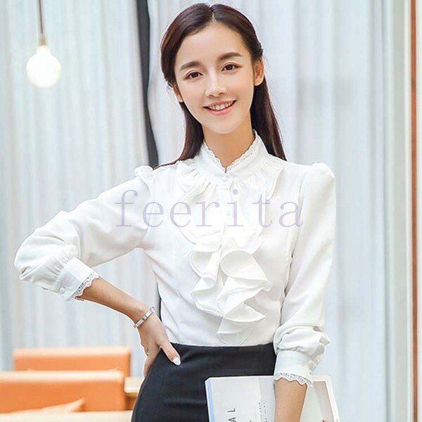★商品名:ブラウス シャツ 長袖 立襟 フリル ボーダー レディース レース 韓国 韓国ファッション コーデ おすすめ カジュアル きれいめ 大きいサイズ 人気 ゆったり 20代 30代 40代 50代