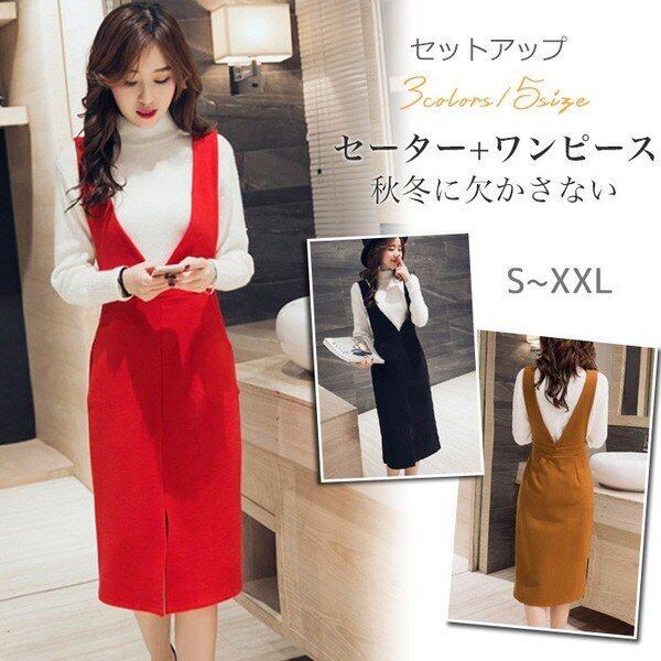 セットアップ セーター ハイネック ジャンパースカート ワンピース 2点セット 2818