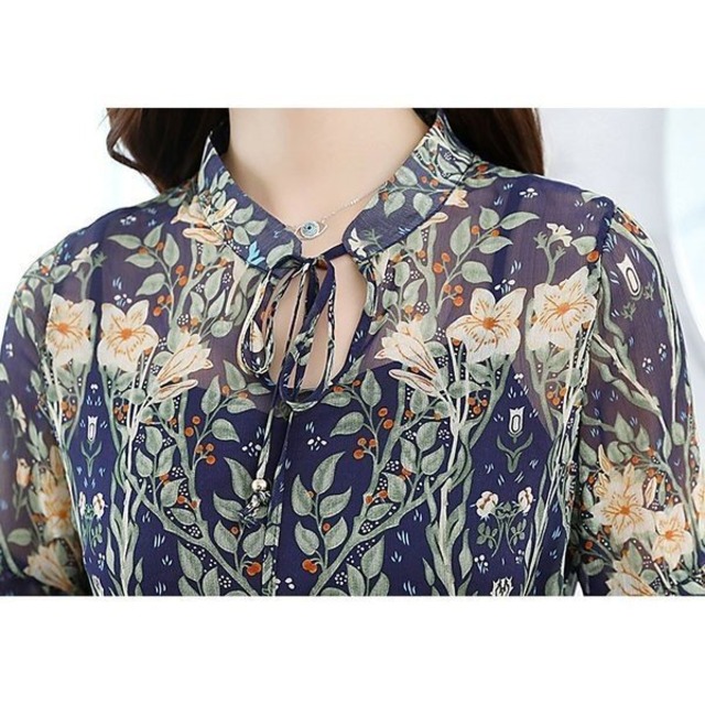 ワンピース レディース シフォンワンピース マキシ丈 花柄 フレアスリーブ 五分袖 5342