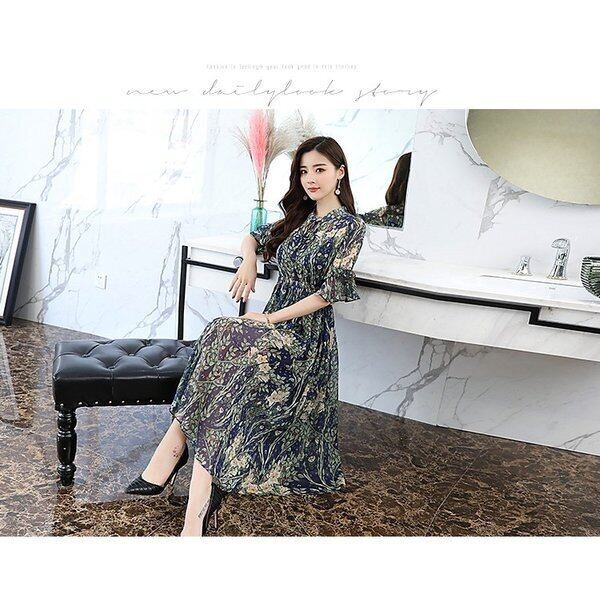 ワンピース レディース シフォンワンピース マキシ丈 花柄 フレアスリーブ 五分袖 韓国 韓国ファッション コーデ おすすめ カジュアル きれいめ 大きいサイズ 人気 ゆったり 20代 30代 40代 50代