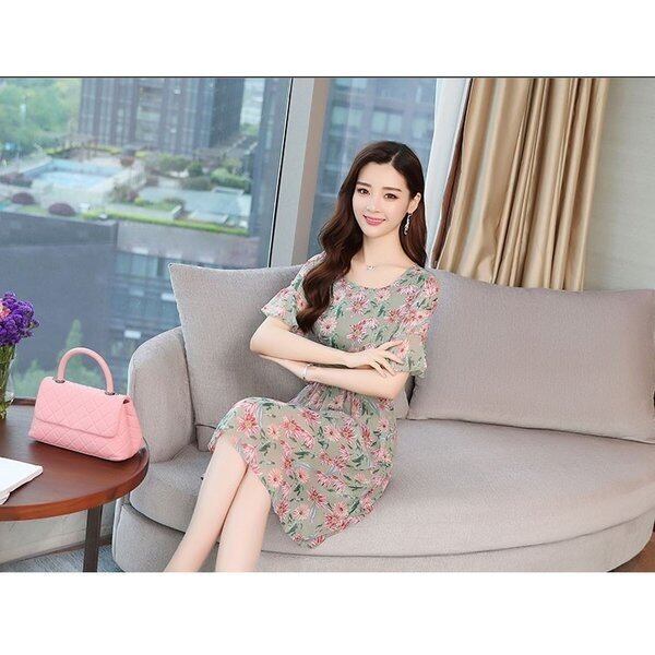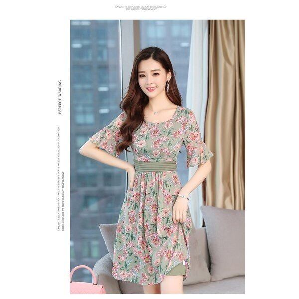 ワンピース 2color シフォンワンピース レディース 膝丈 フレア 五分袖 花柄 5344
