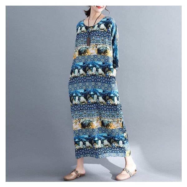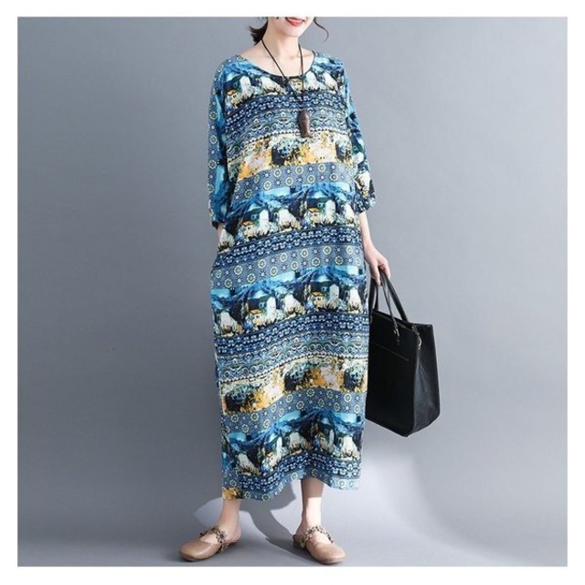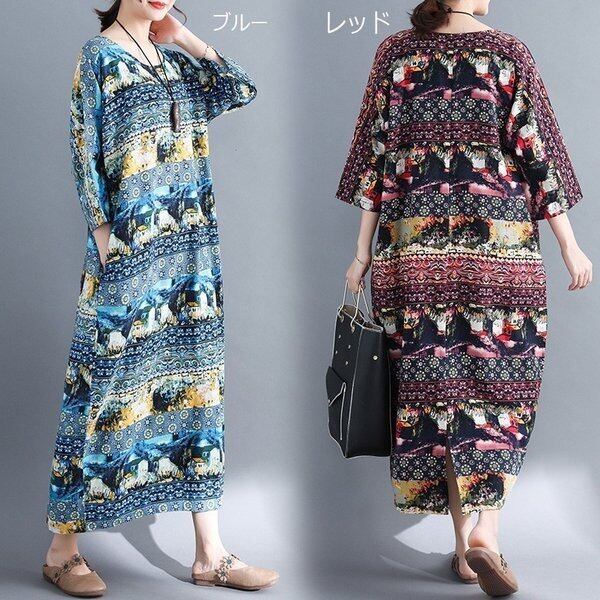 ワンピース 2color マキシワンピース 大きいサイズ レトロ 民族風 レディース 5360