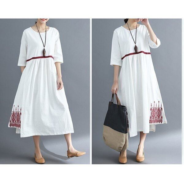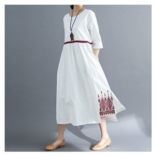 ワンピース 2color マキシワンピース 大きいサイズ 刺繍 スリット 韓国 韓国ファッション コーデ おすすめ カジュアル きれいめ 大きいサイズ 人気 ゆったり 20代 30代 40代 50代