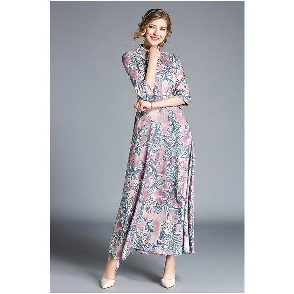 ワンピース 花柄 ロングワンピース 七分袖 マキシ丈 春秋 5379